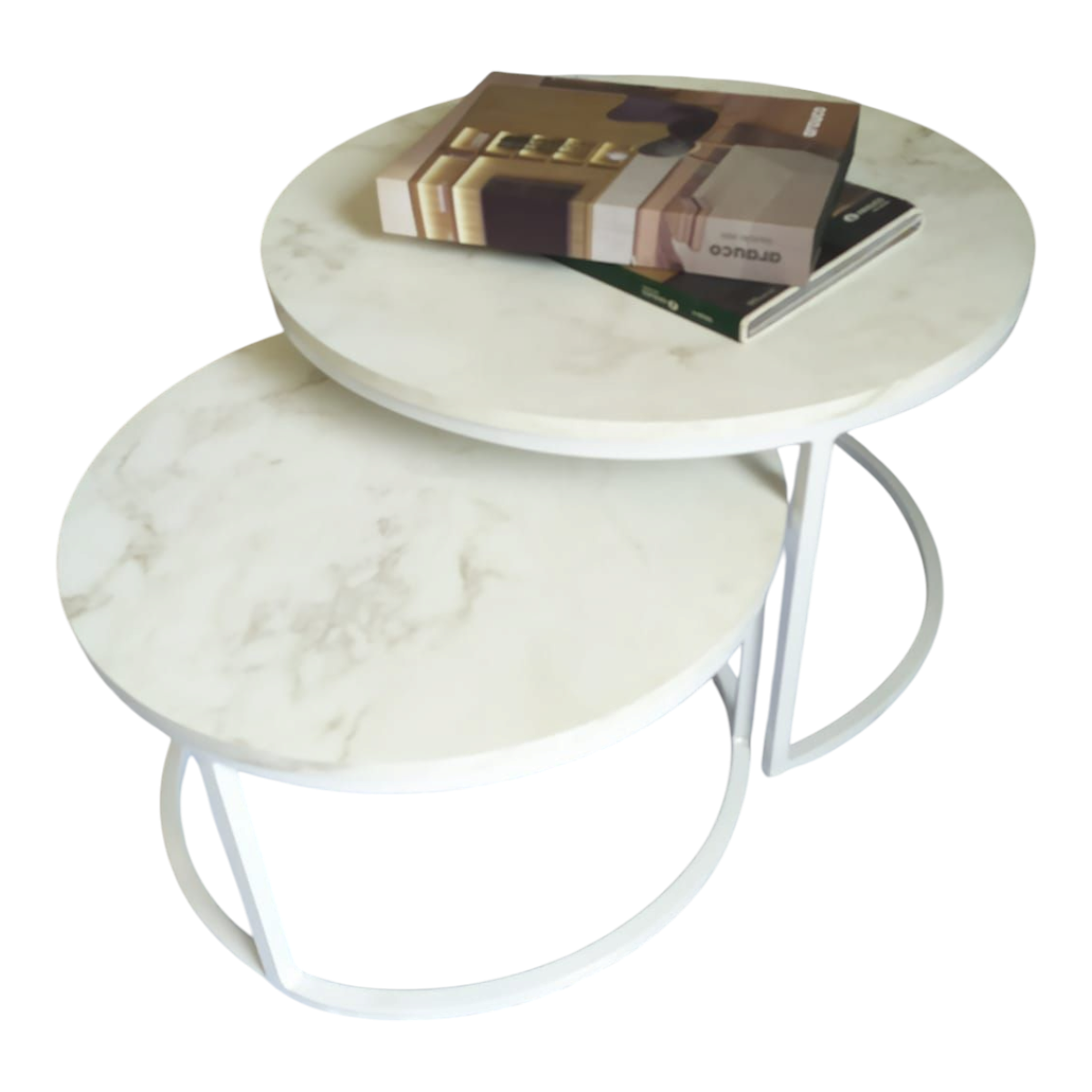 DUO DE MESAS DE CENTRO KIRA BRANCO COM MDF BRANCO MARMORIZADO