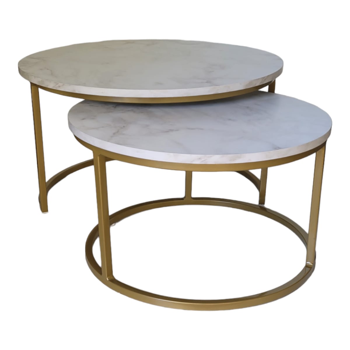 Duo de Mesas de Centro Kira Dourado Com Tampo em MDF Marmorizado