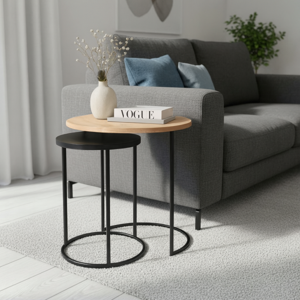 Duo de Mesas Lateral Kira Preto com tampo em MDF Preto e Louro Freijó